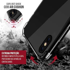 A capa antishock usa uma tecnologia que absorve o impacto da queda nos quatro cantos do aparelho. Assim, caso ele caia, há menos riscos de que os danos sejam grandes, uma vez que o sistema de absorção de choques ameniza o impacto.