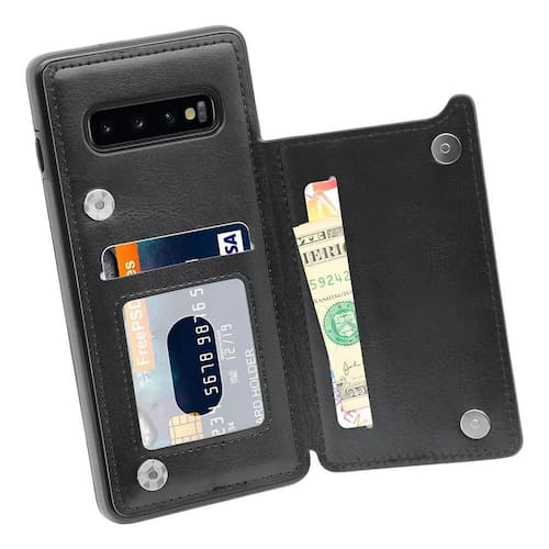Capa tipo carteira com compartimentos para cartões e fechamento magnético.Características