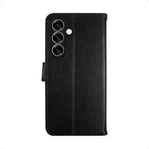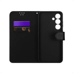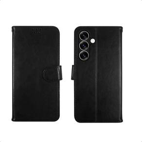 Capa tipo carteira com compartimentos para cartões e documentos. Fechamento magnético ou por aba. Encaixe interno em TPU flexível. Recortes precisos para acesso a botões e conectores. Tampa frontal pode funcionar como suporte horizontal.Tipo