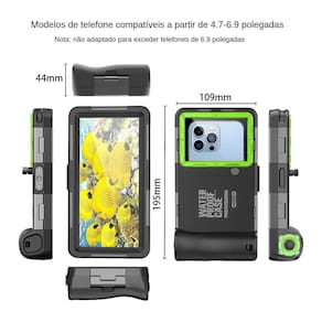 - Acionamento da Câmera pelos Botões de Volume: Compatível com os botões de volume de ambos os lados do celular (maior compatibilidade), proporcionando maior praticidade na hora de tirar fotos debaixo d'água;