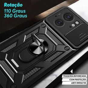 4. Essa capa possui algum diferencial? Sim, essa capa possui um relevo na parte que protege a câmera, um anel de dedo e metal embutido para aderir em imã, além de um slide cover para maior proteção das câmeras e privacidade.