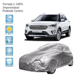 A capa automotiva impermeável é fabricada polietileno que ajuda a manter a qualidade e durabilidade do seu veículo protegendo de qualquer chuva, sujeira ou poeira externa. Capa no tamanho adequado ao carro que esta no título do anuncio. Hyundai creta. Todos os anos e modelos.