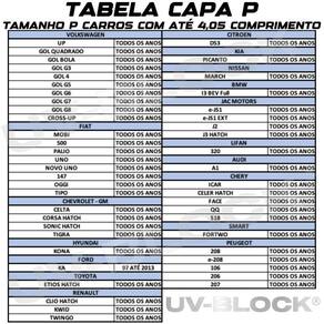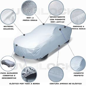 Atenção: a capa uv-block possui padrão alto de qualidade não se comparando a capas comuns do mercado, o seu segredo está no polietileno na sua fabricação que proporciona muito mais proteção ao seu veículo e mais tempo durável. Capa uv-block forrada p Elas são especificamente desenhadas para lhe oferecer a mais avançada proteção contra os seguintes notáveis inimigos: raios u.V, sujeira, sereno, maresia, dejetos de pássaros, folhas, resíduos de árvores, fuligem, poluentes e outras partículas que podem danificar a superfície do seu veículo. Confeccionada com filme composto de 100% polietileno disposto em 02 camadas e aditivada com anti-oxidante e anti u.V. A sua coloração prateada proporciona excelente reflexo da luz solar funcionando como espelho frente aos raios solares. Material: capa polietileno uv-block Forro tnt - polipropileno Forração: central Aplicação tamanho p: carros com até 4,05 x 1,36 m comprimento x altura Exemplos de aplicação: tamanho p : audi a1 , chery face, , s18 , chevrolet celta, corsa hatch, sonic hatch, tigra , citroen ds3 , fiat 500, mobi, palio, uno, uno way , ford ka , jac motors j2, j3 hatch , kia picanto , lifan 320 , nissan march , peugeot 206, 207, 208 , renault clio hatch , suzuki swift , toyota etios hatch , volkswagen gol, up Especificações: - não risca a pintura do carro - 100% impermeável - utilização em garagens cobertas e descobertas - protege seu veículo do sol, chuva e poeira - máxima proteção contra os raios u.V. - protege o carro por completo - fixação firme com elástico nas bordas - fácil instalação - a marca pode variar conforme , porém qualquer marca excelentíssima qualidade uv-block padrão de qualidade. Pesos e medidas aproximados medidas da embalagem: 18 x 28 x 33 cm altura x largura x comprimento peso bruto: 1,13 kg Itens inclusos: 1 capa Atenção: a capa uv-block possui padrão alto de qualidade no se comparando a capas comuns do mercado, o seu segredo est no polietileno na sua fabricação que proporciona muito mais proteção ao seu veiculo e mais tempo durável.