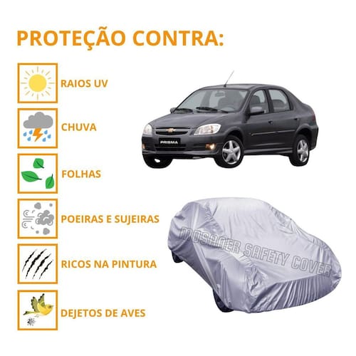 A capa de cobrir carro prisma mosaner safety cover possui ótima qualidade que proteje seu veículo de diversas formas, como contra chuvas, sujeira, poeira, sereno, dejetos de aves, seiva e resíduos de árvores como folhas, fuligem, maresia, poluentes, respingos de tinta, arranhões superficiais e raios solares.