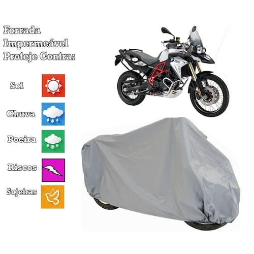 Capa cobrir moto bmw f800gs 100 % impermeável e 100% forrada proteja sua moto com a nova capa bezzter protection. A capa é forrada com tecido e impermeável, desenvolvida exclusivamente para proteção do seu automóvel, protegendo seu carro de sol, chuva, riscos, poeiras, dejetos de animais. A capa motocicletas impermeável é fabricada polietileno que ajuda a manter a qualidade e durabilidade do seu veículo protegendo de qualquer chuva, sujeira ou poeira externa. Capa no tamanho adequado a moto que está no título do anuncio. Benefícios e descrição da capa: