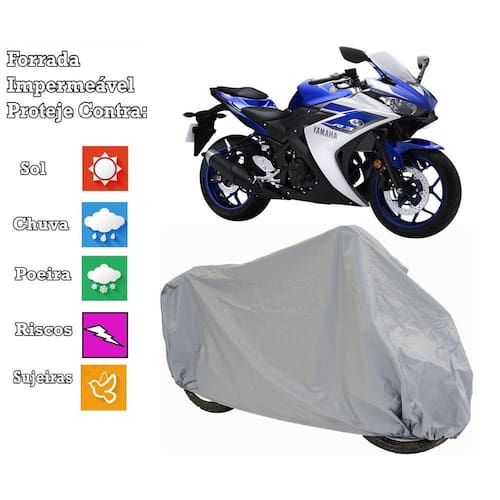 Capa cobrir moto yamaha yzf-r3 100 % impermeável e 100% forrada Proteja sua moto com a nova capa bezzter protection. A capa é forrada com tecido e impermeável, desenvolvida exclusivamente para proteção do seu automóvel, protegendo seu carro de sol, chuva, riscos, poeiras, dejetos de animais. A capa motocicletas impermeável é fabricada polietileno que ajuda a manter a qualidade e durabilidade do seu veículo protegendo de qualquer chuva, sujeira ou poeira externa. Capa no tamanho adequado a moto que está no título do anuncio. Benefícios e descrição da capa: - protege a pintura contra riscos. - capa 100% impermeável. - adequada para garagens descobertas ou cobertas. - protege sua moto por inteira. - instalação prática e fácil. - material 100% polietileno - material do forro 100% tnt, forro total. - elástico interno para melhor fixação. - proteção contra raios uv, chuva, poeira, sujeiras, animais. - reflete luz solar. - leve e resistente. Como colocar sua capa 1 - coloque a capa com a moto limpa, seca e fria com antenas e acessórios recolhidos. Ao desembalar a capa desenrole no sentido do comprimento, a etiqueta vai ficar localizada na frente da moto, e a arte interna da capa fica voltada para baixo 2 - centralize e desfaça as dobras ao longo das laterais, até cobrir, puxe-a para barra até envolver o todo da moto. 3 - faça o mesmo com a parte traseira. Finalize a operação ajustando sua descida nas laterais e centralizando-a. Produto novo Com nota fiscal Com garantia Marca: Bezzter