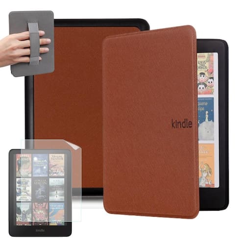 Capa com alça para kindle signature edition 1 7.0+ película Cor: marrom com revestimento interno de microfibra e toque macio, mantém sua tela sem riscos, enquanto o fechamento magnético e as bordas reforçadas garantem uma proteção robusta contra quedas e impactos. e para uma leitura ainda mais confortável, a capa possui uma alça de sustentação, permitindo que você leia onde e quando quiser, sem desconforto nas mãos. além de conforto, você ganha em praticidade com a função auto sleep, que liga a tela ao abrir e desliga ao fechar, ajudando a economizar a bateria do kindle. e para melhorar ainda mais a leitura, a película fosca é a escolha ideal: ela reduz o brilho e o reflexo, deixando a tela clara e fácil de ler, mesmo em ambientes com muita luz. Além disso, sua flexibilidade permite um encaixe perfeito e discreto ---------------- ---------------- serve em qual modelo R: é compatível com novo kindle colorsoft 1º geração 2025 7 polegadas e novo kindle colorsoft signature edition 1º geração 2025 7 polegadas qual é a função da alça de sustentação na capa R: a alça de sustentação proporciona mais conforto durante a leitura, permitindo segurar o kindle com segurança e evitando o desconforto nas mãos. Isso facilita o uso em diversos lugares, sem preocupações com quedas. a película é fácil de aplicar Sim, a aplicação da película é simples e rápida. basta limpar a tela do kindle utilizando o kit limpeza enviado com a película, centralizar a película do meio da tela e dar uma pequena pressão no meio o fechamento magnético é seguro R: com certeza o fechamento magnético mantém a capa bem fechada. a capa protege contra quedas e impactos Sim, a capa possui bordas reforçadas e encaixe perfeito, proporcionando excelente proteção contra quedas e impactos, além de minimizar o risco de danos. a película altera a sensibilidade da tela ao toque posso usar capa junto com película R: sim, a película é imperceptível e complementa perfeitamente o uso de uma capa protetora. ------------------ Especificações ------------------ Revestimento interno: microfibra Altura: 18cm Largura: 13.5cm Película de plástico. Compatibilidade: Kindle colorsoft 1º geração 2025 7 polegadas e Kindle colorsoft signature edition 1º geração 2025 7 polegadas ------------------ Conteúdo ------------------ 1x capa protetora com alça. 1x película de plástico. 1x kit limpeza. Anúncio referente a capa com alça e película Acessórios que ambientam as fotos não inclusos. ------------------ Apresentação: ------------------ - qualidade garantida. - atendimento qualificado. - enviamos para todo o brasil. - compra garantida. - despachamos em até 1 dia útil após confirmação do pagamento Garantimos a devolução por arrependimento em até 7 dias, após o recebimento e de 15 dias contra defeitos de fabricação. Marca: Não Informado