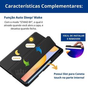 Esta capa é projetada com um slot para caneta touch que permite fácil acesso e armazenamento de sua caneta;