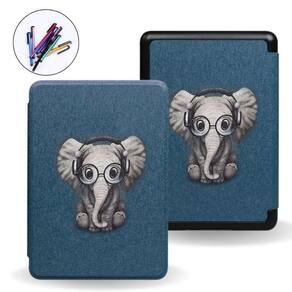 Capa couro estampada para kindle 11 geração c2v2l3 + caneta Cor: elefante Kindle novo kindle básico 2022 11 geração c2v2l3