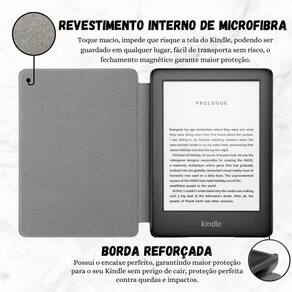 ------------------ Especificações ------------------ Peso: 89g. Material externo: couro sintético. Material interno: camurça. Material da parte interna que encaixa o kindle: acrílico Compatibilidade: Capa estampada kindle básico 2022 11 geração c2v2l3