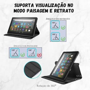 A função giratória da capa permite que você alterne facilmente entre os modos paisagem e retrato, adaptando-se às suas necessidades de visualização e uso. Ela também possui um fecho magnético embutido, que mantém a capa firmemente fechada quando não está em uso, garantindo a proteção do seu tablet.