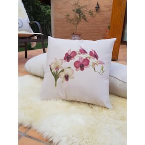 Capa de almofada em tecido 100% algodão, com toque suave pois o tecido, embora resistente, sofre peletização o que o deixa com um toque quase aveludado. A cor do tecido é 'areia' o que proporciona suavidade de fundo para as cores da estampa. Esta cor também permite inúmeras combinações na sua decoração, deixando o ambiente leve e elegante. Marca: Magnolia St.