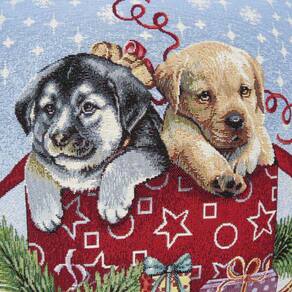 Capa de almofada decorativa Cachorrinhos de Natal, 45x45cm, feita em Gobelino de alta qualidade importado da Europa.