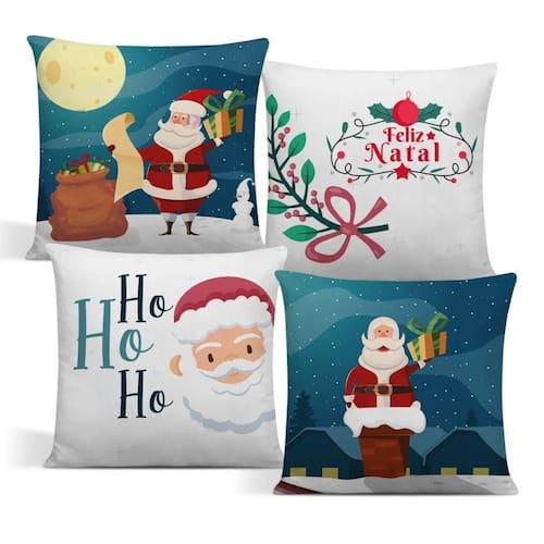 Capa De Almofada De Natal Com Zíper 43cm X 43cm Kit 04 Peças Natal 13