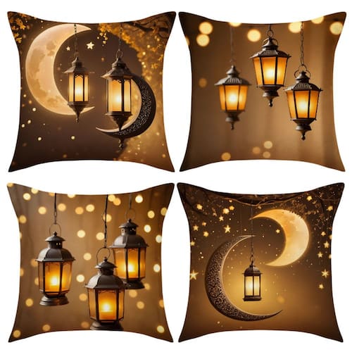 Material: linho de imitação Peso: 600 g Tamanho: 45 × 45 cm Design elegante do Oriente Médio — apresenta uma impressionante lanterna estampada em ouro e um design de lua crescente, criando um ambiente aconchegante e encantador para qualquer ambiente. Tecido luxuoso de linho sintético — Feita de material de linho sintético macio e durável, esta capa de almofada oferece uma aparência premium, fácil de cuidar e durabilidade duradoura. Decoração de casa versátil — perfeita para realçar o sofá da sala de estar, quarto ou cadeira de escritório, esta capa de almofada decorativa complementa interiores de inspiração boêmia ou do Oriente Médio. Tamanho perfeito para a maioria das almofadas — Com um tamanho de 45 x 45 cm, ele se encaixa na maioria dos travesseiros de tamanho padrão, tornando-o uma adição versátil à decoração da sua casa. Fácil de manter — O material de linho sintético é fácil de limpar, oferecendo uma maneira fácil de manter sua capa de travesseiro fresca e bonita.