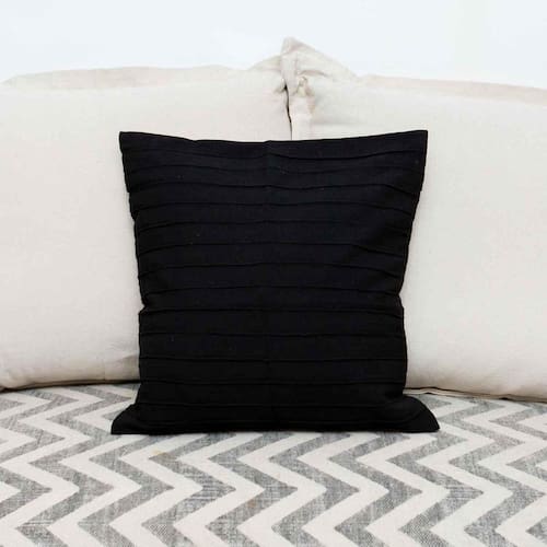 Capa de Almofada Drapeada de Algodão Preta45cmx45cm Capa de Almofada Drapeada de Algodão Preta 45cmx45cm