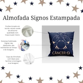Capa De Almofada Estampada Signos Do Zodíaco Em Veludo Suede 45cm X 45cm - Decoração Astrologia Horóscopo Cor Câncer