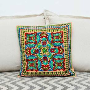 Capa de Almofada Indiana Bordada 100% Algodão 45x45cm Capa de Almofada Indiana Bordada 100% Algodão 45x45cm