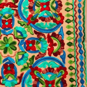 Material: 100% Algodão Cor: cores Diversas fundo salmão Peso: aproximadamente 160g Largura: 45cm Altura: 45cm Origem: índia
