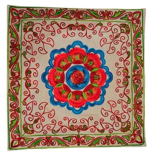 Capa de Almofada Indiana Bordada 100% Algodão 45x45cm