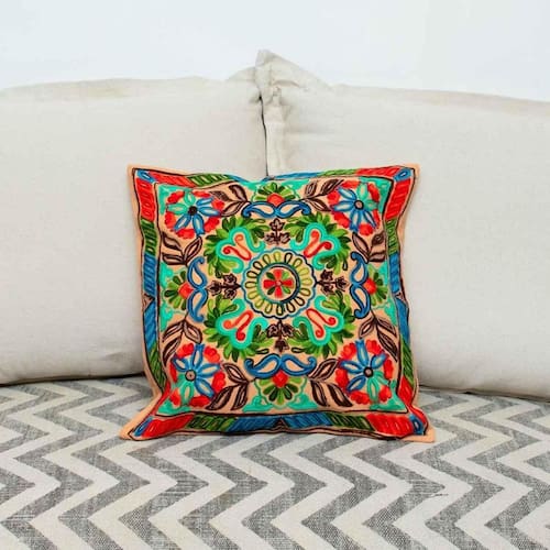 Capa de Almofada Indiana Bordada 100% Algodão 45x45cm Capa de Almofada Indiana Bordada 100% Algodão 45x45cm As capas de almofada são excelentes para complementar qualquer ambiente, seja ele sua casa ou escritório. Ficam ótima em sofás, camas e poltronas. Quanto mais almofadas, mais aconchego. Compre as suas capas e deixe o ambiente ainda mais bonitos. Material: 100% Algodão Cor: cores Diversas fundo salmão Peso: aproximadamente 160g Largura: 45cm Altura: 45cm Origem: índia Esse é um produto artesanal, fabricado e da Índia e pode apresentar pequenas variações de cor, brilho, peso, tamanho. As estampas também podem apresentar variações. As capas não possuem enchimento. É necessário comprá-lo separadamente. Lave a sua peça separadamente com sabão neutro e não use alvejante. A sua peça pode soltar tinta nas primeiras lavagens. As fotos são ilustrativas. Qualquer produto adicional utilizado na descrição da foto deve ser comprado separadamente. Marca: Não Informado