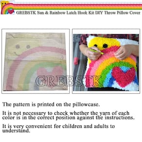 1 - Agora adotamos materiais melhores sem qualquer odor. - Criativo e divertido: comece um novo hobby com nossa capa de travesseiro de kit de gancho de trinco. É a atividade perfeita para viagens e você pode levá-la com você para qualquer lugar. Travesseiro: 40,6 x 40,6 cm. - Fácil de usar: com instruções em vídeo. A estampa é impressa na fronha. Não é necessário verificar se o fio de cada cor está na posição correta de acordo com as instruções. É muito conveniente para crianças e adultos entenderem. - Inclui tudo: fornecemos todas as ferramentas necessárias para criar minicaretes texturizados de pelúcia. Com uma tela impressa, instruções, fio suficiente e uma agulha de crochê, você pode começar imediatamente! - Infinitas possibilidades: este projeto DIY tem vários propósitos e pode ser utilizado para decorar muitos itens domésticos. Coloque-o na parede ou no sofá, ou use-o para fazer capas de almofadas, almofadas e assim por diante. - Um ótimo presente: começou devagar para você, mas quando você pegou o jeito, você adorou. O kit de gancho de trava GREBSTK é o presente perfeito para aniversário, feriados, aniversários, dia das mães e muito mais!
