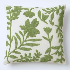 Capa de Almofada Tecido Garden Luxo Folhagens Creme e Verde 42x42cm - Jolitex