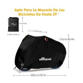 1. Feito de tecido oxford durável, à prova de poeira e resistente a UV. Há uma fivela de cinto na parte inferior da lona, o que torna a capa protetora mais segura para que ela não possa ser arrastada pelo vento. Produzido com uma costura dupla, que é impermeabilizada por um forro interno para proteger sua bicicleta de qualquer momento.4. Ilhós de segurança na frente, permitindo que a tampa se encaixe com segurança na roda dianteira da bicicleta, evitando roubo (cadeado não incluído) .5. Fácil de manusear, você pode fazer um ajuste apertado com a bainha inferior elástica e há uma fivela de alça ajustável. Design de suspensão, suspensão superior e fivela de secagem. 7. Fácil de transportar, vem com uma bolsa de transporte com cordão para armazenamento conveniente. Dimensão: 200x110x76cm, pode caber 1 bicicleta de até 29 polegadas ou 2 bicicletas de até 26 polegadas. Ideal para bicicletas de montanha, ciclomotores e bicicletas com cestos, cadeiras de bebê ou prateleiras.
