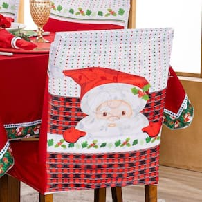 Capa De Cadeira Jantar Avulsa Estampada Natalina Ajustável c/ Elástico - Para Papai Noel