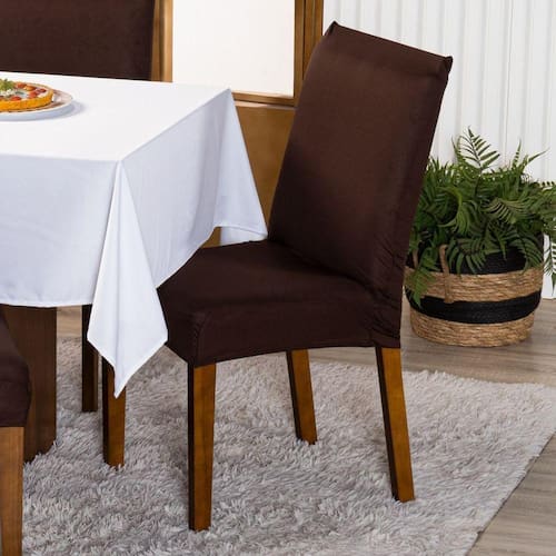 Capa De Cadeira Jantar Avulsa Lisa Ajustável Com Elástico - Protetora Decoração Moderna Para Cozinha Malha Gel Helanca Cor Tabaco