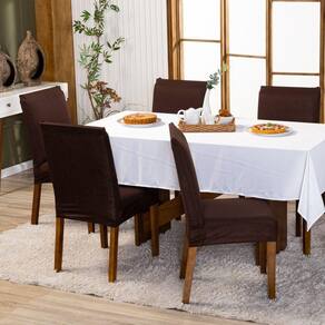 Capa De Cadeira Jantar Avulsa Lisa Ajustável c/ Elástico - Moderna Para Cozinha Malha Gel Tabaco