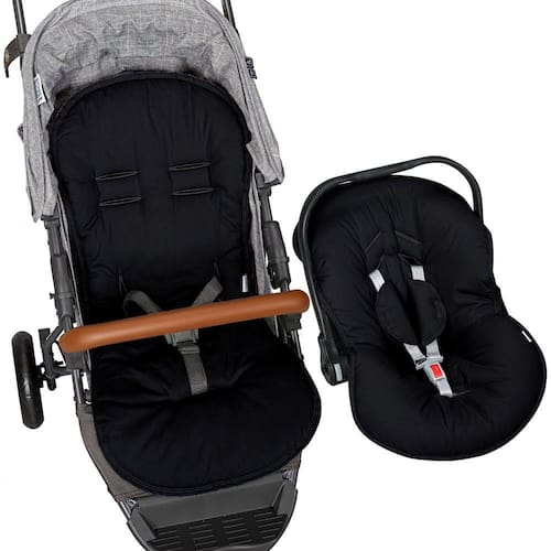 Capa para Carrinho e Bebê Conforto - Preto elaboradas em tecido 100% algodão liso. Dois itens muito importantes e buscados para compor o enxoval do neném. A capa de carrinho além de deixar muito mais charmoso também o protege, assim como a capa para bebê conforto que acompanha dois protetores de cinto. Peças importantes para dar mais elegancia e proteção. Elas podem ser facilmente removidas e lavadas - protegendo e preservando a vida útil do carrinho e do bebê conforto.
