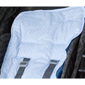 Capa de Carrinho, excelente para manter o bebê num lugar limpo e confortável conservando também seu carrinho higienizado. Compatível com carrinhos de passeio nacionais. Produzida em tecido antialérgico 100% algodão, acolchoado com manta acrílica. Contém passagem para cinto de segurança, que devem ser abertos com o auxilio de uma tesourinha conforme a regulagem. Pode ser lavado na maquina. Secar na sombra. Medida: 83 x 33 x 2 Marca: Não Informado