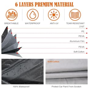 Característica: Material premium: Material durável Feito de tecido de tafetá de poliéster 210T de alta qualidade e trama pesada, com algodão interno mais espesso, durável, não desbota e 100% à prova d'água. O material de tafetá de poliéster será mais fino, o efeito à prova d'água é extremamente forte e o armazenamento é conveniente Zíper de porta dupla para fácil acesso, listras refletivas frontais para evitar arranhões à noite. Substitua para capa de carro Jeep Gladiator 2019 2020 2021 2022 2023 2024 Incluído na embalagem: 1 capa completa para carro 1 bolsa de armazenamento. - Compatível com: Esta capa de carro impermeável para todos os climas serve perfeitamente para Jeep Gladiator (JT), Rubicon, North Edition, Mojave, Altitude/High Altitude, Willys, Texas Trail. Protege totalmente o seu carro como uma garagem móvel - Materiais premium: Feito de 6 camadas Material resistente: 1: O exterior é material macio 210T, pode suportar a exposição ao sol no verão e chuva/neve de inverno 2: O alumínio altamente reflexivo é bom à prova de sol, mantém o carro fresco no dia ensolarado. 3. Parte interna de algodão mais espessa para proteger a pintura do seu carro - Detalhes do design: 1: Com zíper de porta à esquerda para fácil acesso. 2. Faixas à prova de vento na frente e atrás para fixar a capa do seu carro em clima de vento forte. 3. Listras refletivas para lembrar as pessoas à noite. 4. Lindos bolsos espelhados protegem perfeitamente os danos do seu espelho. 5: Bainhas elásticas ajustáveis na parte inferior permitem que você ajuste o tamanho facilmente. 6: Quatro amarrações ajudam você a amarrar a capa em quatro rodas, não se preocupe com soprar em um dia ventoso - Capa de carro para todos os climas: as capas de carro sportuli podem lidar com tudo, não importa o sol quente ou o clima frio. O material resistente mantém seu carro protegido do sol, neve, geada, chuva, granizo, areia, poeira, folhas, galhos e pássaros caindo - Incluído na embalagem: 1 capa de carro, 1 bolsa de armazenamento. Protege totalmente o seu carro como uma garagem móvel. Com a capa de carro eficaz, o bom estado do seu carro durará o maior tempo possível