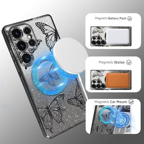 CapaCapa de celular com glitter compatível apenas com Samsung Galaxy S25 Ultra. Recortes precisos se encaixam perfeitamente em todas as portas e permitem acessar todas as funções rapidamente. Capa de celular com ímã integrado compatível com vários dispositivos de carregamento sem fio. Fornece proteção total à prova de choque; a borda elevada protege sua tela e câmera de arranhões. - A capa de celular serve apenas para Samsung Galaxy S25 Ultra de 6,9 polegadas. Capa de telefone com anel magnético integrado compatível com todos os carregadores sem fio e carteira magnética. - PACOTE: 1 x capa de telefone, 2 x inserção de papel com glitter. O design padrão de dois estilos permite que você mude a aparência do seu telefone. Você também pode obter uma capa de celular transparente com moldura galvanizada ao remover a folha de glitter. - A capa de celular com glitter é feita de TPU macio, não se preocupe com esta capa de celular ficar fora de forma ou rachar. - Recortes precisos se ajustam perfeitamente a todas as portas; botões responsivos permitem acesso fácil. - Fornece proteção total à prova de choque; bordas elevadas evitam que sua tela e câmera arranhem.