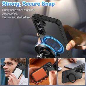Capa?Suporte magnético invisível?Feito de alumínio de nível aeroespacial, o suporte é prático e multifuncional. Pode ser ajustada entre 40° e 120° para uma experiência de visualização estável e sem usar as mãos, e funciona como um suporte de anel para maior conveniência. Com estilo de vida N+1, pode ser utilizado para assistir TV, trabalhar em reuniões ou conversar por vídeo. - ?Modelos compatíveis? Esta capa fosca translúcida é compatível apenas com Samsung Galaxy S23 Plus, não é compatível com nenhum outro modelo de telefone. - ?Compatível com acessórios MagSafe e carregamento sem fio?Esta capa de telefone com um anel magnético integrado que se alinha perfeitamente com os carregadores MagSafe e outros carregadores com certificação Qi, oferece uma forte experiência de fixação e carregamento sem fio mais rápido. Compatível com todos os acessórios Magsafe, como um carregador magnético, suporte magnético para carro, carteira magnética, carregador magnético, etc. Carregue do seu jeito. - ?Design fosco translúcido?Parte traseira fosca translúcida avançada, restaurando a textura metálica e exibindo o logotipo do seu telefone fracamente, evita que a capa fique suja ou amarele, com uma sensação refrescante e suave. A textura fosca oferece uma melhor aderência. - ?Material premium?Feito de moldura de TPU flexível e parte traseira de policarbonato antiarranhões protege seu telefone contra choques e arranhões sem adicionar volume. - ?Suporte magnético invisível?Feito de alumínio de nível aeroespacial, o suporte é prático e multifuncional. Pode ser ajustada entre 40° e 120° para uma experiência de visualização estável e sem usar as mãos, e funciona como um suporte de anel para maior conveniência. Com estilo de vida N+1, pode ser utilizado para assistir TV, trabalhar em reuniões ou conversar por vídeo.