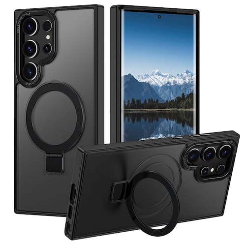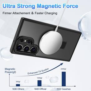 Capa?Suporte magnético invisível?Feito de alumínio de nível aeroespacial, o suporte é prático e multifuncional. Pode ser ajustada entre 40° e 120° para uma experiência de visualização estável e sem usar as mãos, e funciona como um suporte de anel para maior conveniência. Com estilo de vida N+1, pode ser utilizado para assistir TV, trabalhar em reuniões ou conversar por vídeo. - ?Modelos compatíveis? Esta capa fosca translúcida é compatível apenas com Samsung Galaxy S23 Ultra, não compatível com nenhum outro modelo de telefone. - ?Compatível com acessórios MagSafe e carregamento sem fio?Esta capa de telefone com um anel magnético integrado que se alinha perfeitamente com os carregadores MagSafe e outros carregadores com certificação Qi, oferece uma forte experiência de fixação e carregamento sem fio mais rápido. Compatível com todos os acessórios Magsafe, como um carregador magnético, suporte magnético para carro, carteira magnética, carregador magnético, etc. Carregue do seu jeito. - ?Design fosco translúcido?Parte traseira fosca translúcida avançada, restaurando a textura metálica e exibindo o logotipo do seu telefone fracamente, evita que a capa fique suja ou amarele, com uma sensação refrescante e suave. A textura fosca oferece uma melhor aderência. - ?Material premium?Feito de moldura de TPU flexível e parte traseira de policarbonato antiarranhões protege seu telefone contra choques e arranhões sem adicionar volume. - ?Suporte magnético invisível?Feito de alumínio de nível aeroespacial, o suporte é prático e multifuncional. Pode ser ajustada entre 40° e 120° para uma experiência de visualização estável e sem usar as mãos, e funciona como um suporte de anel para maior conveniência. Com estilo de vida N+1, pode ser utilizado para assistir TV, trabalhar em reuniões ou conversar por vídeo.