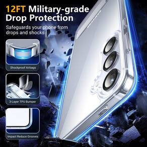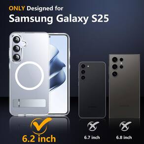 CapaSPIDERCASE Capa magnética para Samsung Galaxy S25, transparente - ?Ajuste perfeito? Capa SPIDERCASE projetada apenas para Samsung Galaxy S25 de 6,2 polegadas. Recortes precisos para fácil acesso a todas as portas, botões, sensores e câmeras. Botões sensíveis com boa resposta são fáceis de pressionar. Suporta carregamento sem fio. - ?Magnético super forte?Com um anel magnético integrado que se alinha perfeitamente com carregadores magnéticos, esta capa oferece uma fixação mais forte e velocidade de carregamento mais rápida. Compatível com todos os acessórios magnéticos e carregadores sem fio (como carregador sem fio de carro, carregadores sem fio, carteiras magnéticas, etc.). - ?Suporte funcional e invisível? O suporte da capa de celular é dobrável, resistente e construído para durar, com suporte prático integrado feito de alumínio leve e sólido de grau aeroespacial que oferece uma experiência robusta e flexível no modo retrato, paisagem ou teleconferência. Permite que você obtenha um ângulo de visualização mais confortável. Reduza a frequência de olhar para a tela do telefone para evitar machucar suas costas e pescoço. - ?À prova de choque de nível militar? Esta capa passou por testes militares de queda de até 3,6 m, tem uma parte traseira de policarbonato resistente e amortecedores de borracha flexível que fornecem forte amortecimento para quedas diárias. O design pequeno de bordas de 1,5 mm sobre a câmera e molduras de 1,5 mm sobre a tela evitam poeira e arranhões. - ?Aderência confortável? Esta capa fina para Samsung Galaxy S25 oferece maior portabilidade e aderência mais firme, fácil de manter limpa, anti-impressões digitais e traz a sensação excepcional de toque sedoso.