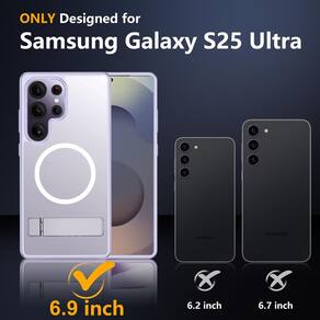 CapaSPIDERCASE Capa magnética para Galaxy S25 Ultra, roxo claro - ?Capa para S25 Ultra?SPIDERCASE projetada para Galaxy S25 Ultra de 6,9 polegadas, não serve para outros modelos, verifique o modelo do seu telefone antes de comprar. O corte preciso do orifício e os botões sensíveis garantem acesso mais fácil a todos os botões e funções. - [Suporte funcional e invisível] O suporte da capa para Galaxy S25 Ultra é dobrável, resistente e construído para durar, com suporte prático integrado feito de alumínio leve e sólido de grau aeroespacial oferecendo uma experiência robusta e flexível no modo retrato, paisagem ou teleconferência. Permite que você obtenha um ângulo de visualização mais confortável. Reduza a frequência de olhar para a tela do telefone para evitar machucar suas costas e pescoço. - [Magnético super forte] Esta capa S25 Ultra possui um anel magnético integrado que se alinha perfeitamente com carregadores magnéticos, esta capa oferece uma fixação mais forte e velocidade de carregamento mais rápida. Compatível com todos os acessórios magnéticos e carregadores sem fio (como carregador sem fio de carro, carregadores sem fio, carteiras magnéticas, etc.). - [À prova de choque de grau militar de 3,5 m] aprovado em testes militares de até 3 m, tem uma parte traseira escovada de policarbonato resistente e amortecedores de borracha flexível que fornecem forte amortecimento para quedas diárias. Airbag poderoso de dispersão de impacto em 360° integrado e tecnologia de canto resistente a impactos de 4 cantos. O design pequeno de bordas de 1,5 mm sobre a câmera e molduras de 1,5 mm sobre a tela evitam poeira e arranhões. - [Design fino e aderência confortável] Esta capa fina para Samsung Galaxy S25 ultra traz maior portabilidade e aderência mais firme, fácil de manter limpa, anti-impressões digitais e traz a sensação excepcional de toque sedoso, sem volume e sem derrapagem para caber facilmente no bolso.