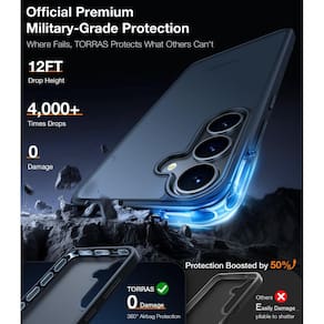 - Artesanato de 16 anos, mais de 10 atualizações. Como pioneira na proteção Guardian, a TORRAS refinou continuamente nossos materiais, incorporando uma defesa robusta em todas as facetas da nossa capa. A Ultra-Secure Shield oferece proteção padrão militar para a capa preta Samsung S25 Plus, proporcionando satisfação a mais de 60.000.000 clientes.