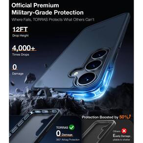 - 16 anos de artesanato, mais de 10 atualizações. Como pioneira na Guardian Protection, a TORRAS refinou continuamente nossos materiais, incorporando uma defesa robusta em cada faceta de nosso estojo. O Ultra-Secure Shield oferece proteção de padrão militar para a capa preta Samsung S25 plus, proporcionando satisfação a mais de 60.000.000 de clientes.