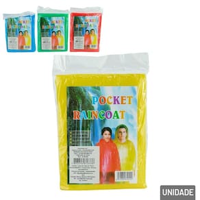 Capa de Chuva Adulto Plástico Color Capa de chuva adulto de plástico. Facil de levar e guardar, protege da chuva e respingos de água. Medida aproximada 80x90cm.\nEspecificações:\nMarca : DATERRA\nTipo de material : Plástico\nCores ou Estampa : Color\nDimensões do Produto : 80 X 90 X 0,5 CM\nDimensões da Embalagem : 17 X 12 X 1 CM\nPeso Bruto (Gramas) : 0.042 Marca: Não Informado