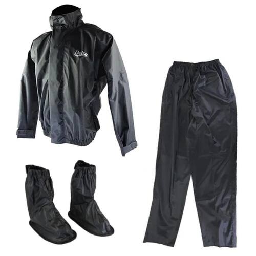 itens inclusos: 01 jaqueta - 01 calça descrição capa de chuva 100% impermeável preta; produzida em nylon; zíper reforçado; fechamento com zipers nas pernas; logomarca delta refeltiva; embalagem exclusiva; cor: preta