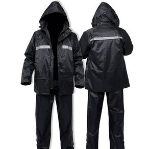 Proteção total - Jaqueta com capuz e calça 100% impermeáveis.