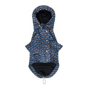 A Capa de Chuva Mina Pet da Zampe combina estilo e funcionalidade, perfeita para dias chuvosos. Confeccionada em tecido tecnológico de poliéster de alta qualidade com trama impermeável, esta capa de chuva apresenta uma estampa exclusiva geométrica e retrô. A modelagem tipo jaqueta veste tanto machos quanto fêmeas, proporcionando conforto e proteção. Possui fechamento com zíper e reforço com botões , capuz removível com elástico regulador na barra e no capuz, e forro de malha dry fit, garantindo respirabilidade e conforto. Mantenha seu pet seco e elegante com a Capa de Chuva Mina Pet. Composição 100% POLIÉSTER Verifique a nossa tabela de medidas e saiba o tamanho ideal do seu pet. Marca: Não Informado