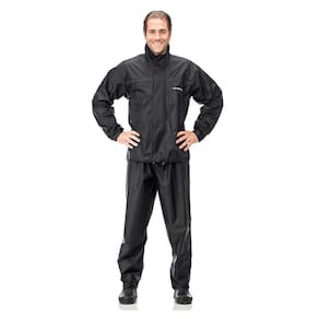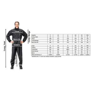 Conjunto Capa de Chuva Nylon com Gola Jaqueta com bolso interno, cintura ajustada com elástico regulador, punhos com elástico e fechamento frontal com zíper e tiras autocolantes. Refletivo nas costas e na barra da calça. Com gola. Tamanhos: G Atenção Verifique as medidas e selecione o tamanho desejado na hora da compra. Medidas (aproximadas): Jaqueta: G Comp. Total: 75 Tórax: 120 Comp. Manga: 69 Barra da cint.: 114 Calça: G Cintura: 126 Comp. Total: 108,5 Entre Pernas: 81 Barra: 81 Altura da Pessoa: 1,73 Código ref. 1000