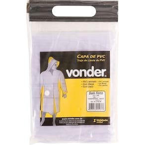 Conteúdo da embalagem1 Capa de PVCAplicações e dicas de usoIndicada para proteção contra chuva DETALHES TÉCNICOS Material da capa para chuva: PVC laminado Número do Certificado de Aprovação - CA: 11040 Tamanho da capa para chuva: GG Cor da capa para chuva: Trasparente Tipo da capa para chuva: Com capuz e manga Espessura da capa para chuva: 0,013 mm Comprimento da capa para chuva: 1,35 m Tipo de forro da capa para chuva: Sem forro Ean: 7893946059613