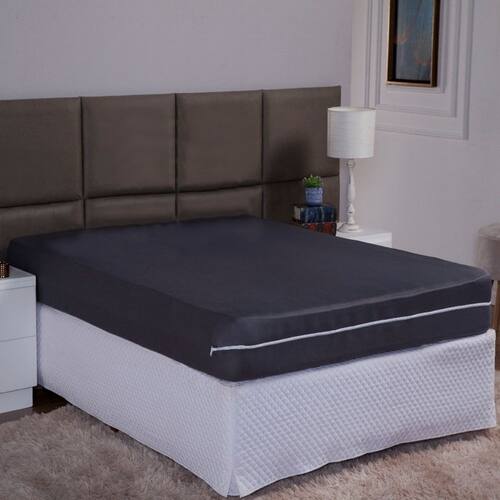 Capa de Colchão Solteiro 25cm com Zíper Protetor de Malha Lisa 1 Peça - Cinza