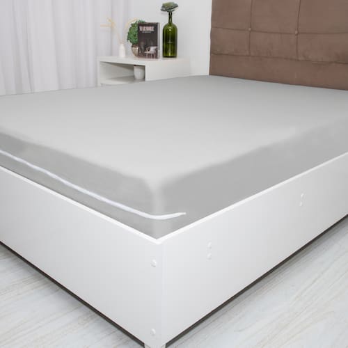 Capa de Colchão Solteiro Malha Liso Doce Vida Peça com Zíper - Cinza