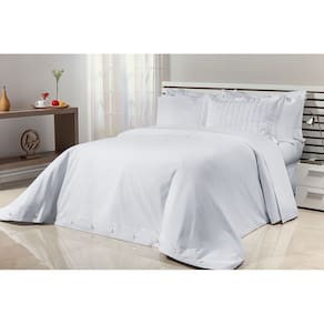 Tecido: 100% algodão egípcio 200 fios, garantindo maciez e durabilidade. Tamanho: King (2,80m x 2,70m), ideal para camas de casal. Enchimento: 100% poliéster, proporcionando leveza e conforto térmico. Fechamento: Zíper invisível para facilitar a troca e lavagem. Acabamento: Costuras reforçadas e acabamento impecável.
